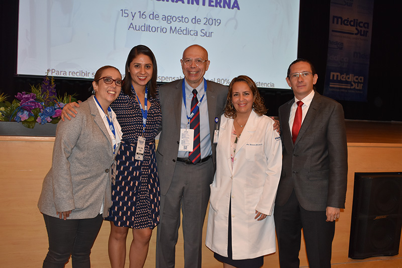 El presídium estuvo integrado por el Lic. Juan Carlos Griera, Director General de Médica Sur, el Dr. Marcelo F. Vela, Gastroenterólogo en la Clínica Mayo y Director de este curso, el Dr. Guillermo Ruiz Argüelles, Gobernador del American College of Physicians, la Dra. Carmen Zavala, Directora Académica de Médica Sur y la Dra. Sandra García, Directora de Medicina y Hospitalización de Médica Sur.